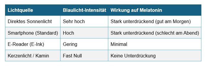 Die kumulative Wirkung: Aktuelle Forschungen der Universität Basel weisen darauf hin, dass die Lichtexposition über den gesamten Tag hinweg beeinflusst, wie empfindlich wir abends auf Blaulicht reagieren. Wer tagsüber viel echtes Sonnenlicht tankt, ist abends resilienter gegen künstliches Licht.